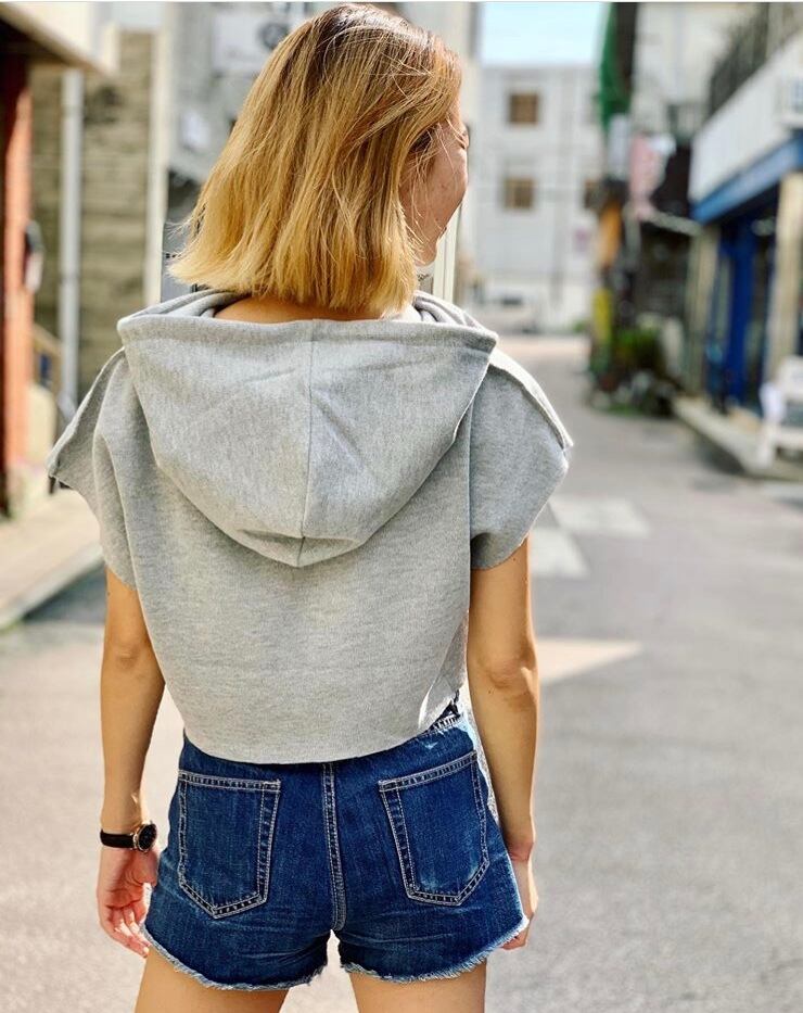 ショート丈でワイドパンツやロングスカートと合わせても!
