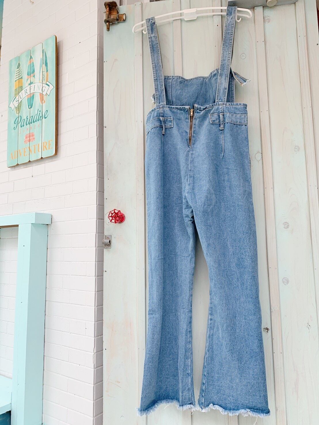 フレアデニムのサロペット。